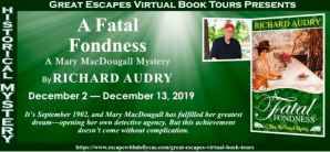 My blog tour for A Fatal Fondness starts today, organized by Escape with Dollycas. The first stop is at A Wytch’s Book Review Blog and it features a brief memoir by Emma Beach, Mary MacDougall’s housekeeper. Check out what she has to say about the headstrong young sleuth by clicking the illustration below.