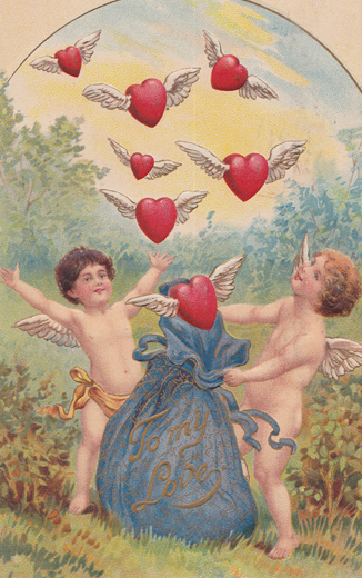And what do these old postcard Valentines say? Here’s what one of them—addressed to Miss Dora Bauder of Fort Plain, New York, c. 1908—had to say. Hold on now, it’s pretty steamy: