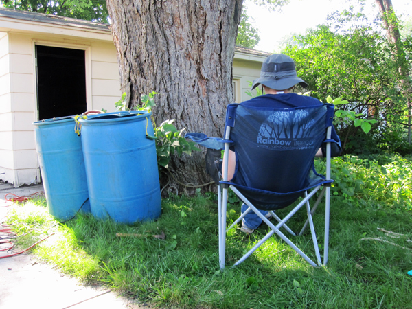 And today was the day our elm took its medicine. Two big barrels full of the anti-fungal agent were pumped into the tree’s roots over the course of about three hours. It’s important that this magnificent tree stays alive and thrives, so future owners of our little bungalow can enjoy its wonderful shade as much as we have.